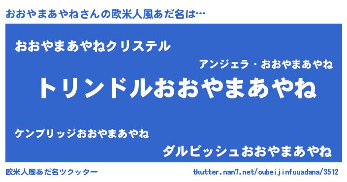 | 女子向けラノベタイトル風あだ名 | 『おおやまあやねの玉の輿計画!』 |
