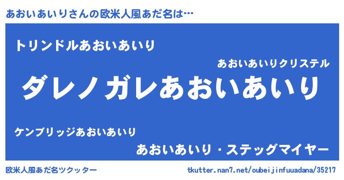 | 男性向けラノベタイトル風あだ名 | 『この素晴らしい世界にあおいあいりを!』 |