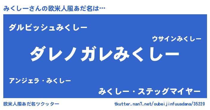 | 意味不明あだ名 | 『住所不定無職みくしー(1歳)』 |