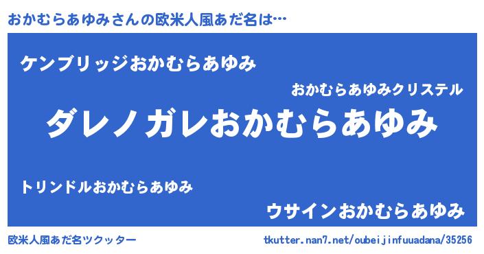 | 女子向けラノベタイトル風あだ名 | 『おかむらあゆみが死なない童話 林檎のおかむらあゆみの診療簿』 |