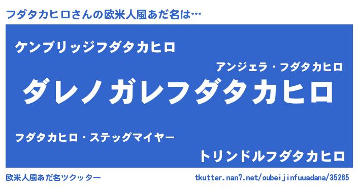 女子向けラノベタイトル風あだ名 | 『乙女ゲームの破滅フラグしかない悪役フダタカヒロに転生してしまった…』 |