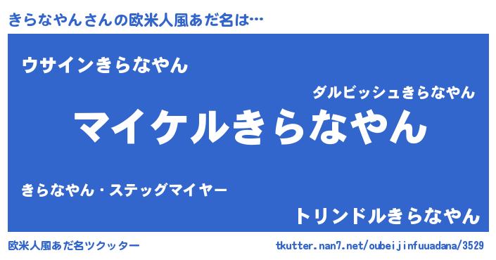 | 男性向けラノベタイトル風あだ名 | 『キラナヤンアートオンライン』 |