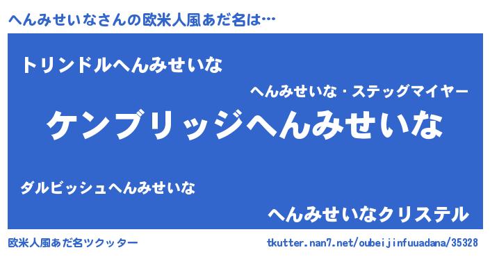 | 意味不明あだ名 | 『自称へんみせいな』 |