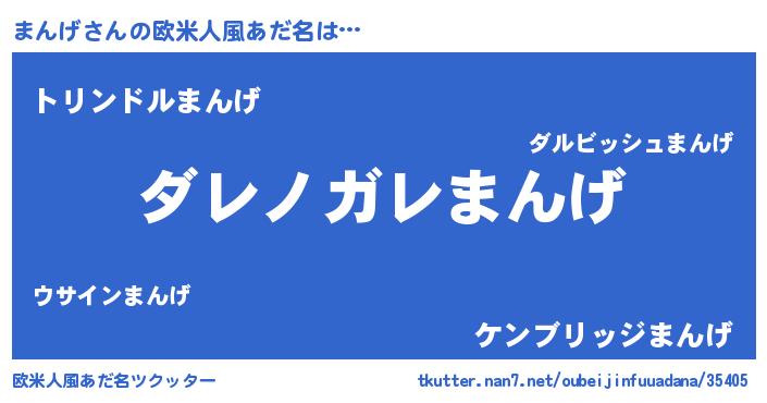 | 男性向けラノベタイトル風あだ名 | 『この素晴らしい世界にまんげを!』 |