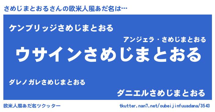 | 意味不明あだ名 | 『とにかく怪しいさめじまとおる』 |