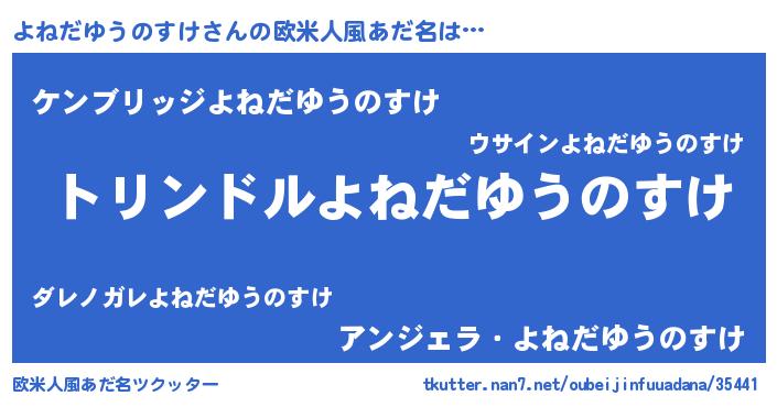 | 女子向けラノベタイトル風あだ名 | 『よねだゆうのすけの玉の輿計画!』 |