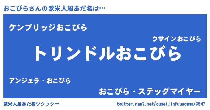 | 男性向けラノベタイトル風あだ名 | 『転生したらおこびらだった件』 |