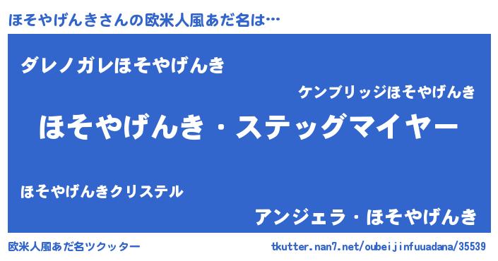 | 意味不明あだ名 | 『住所不定無職ほそやげんき(11歳)』 |