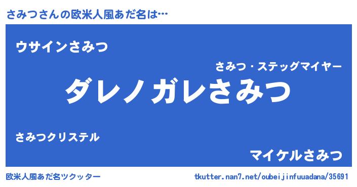 女子向けラノベタイトル風あだ名 | 『悪役さみつに転生したようですが、知った事ではありません』 |