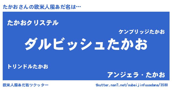 | 男性向けラノベタイトル風あだ名 | 『たかおという概念が存在しない退屈な世界 』 |