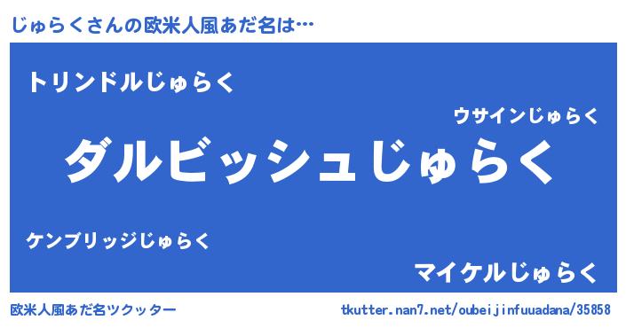 | 男性向けラノベタイトル風あだ名 | 『じゅらくという概念が存在しない退屈な世界 』 |