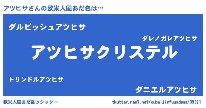 | 女子向けラノベタイトル風あだ名 | 『アツヒサの婚約者』『アツヒサ恋絵巻』 |
