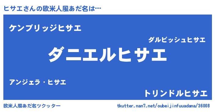 | 女子向けラノベタイトル風あだ名 | 『ヒサエ夫妻のなれそめ』『闇のヒサエ』 |