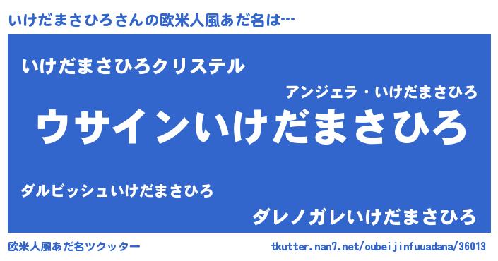 | 男性向けラノベタイトル風あだ名 | 『いけだまさひろの嫁は女の子じゃないと思った?』 |