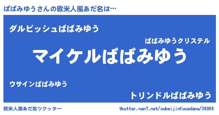 | 男性向けラノベタイトル風あだ名 | 『ババミユウアートオンライン』 |