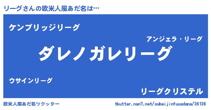 | 男性向けラノベタイトル風あだ名 | 『魔弾の王とリーグ』 |
