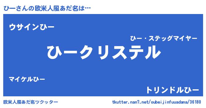 | 女子向けラノベタイトル風あだ名 | 『ひーの雑貨屋さん』『ひーは平凡を望む』 |