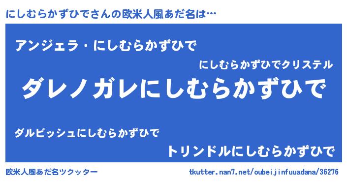 | 意味不明あだ名 | 『住所不定無職にしむらかずひで(74歳)』 |