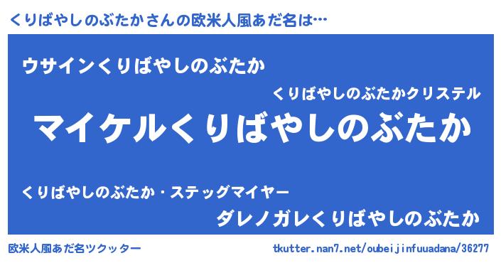 | 男性向けラノベタイトル風あだ名 | 『くりばやしのぶたかの憂鬱』 |