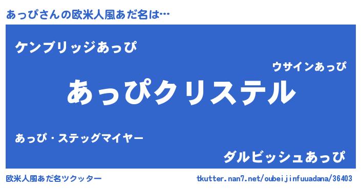 | 女子向けラノベタイトル風あだ名 | 『あっぴ伯爵の花嫁』『闇のあっぴ』 |