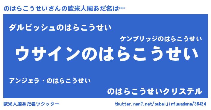 | 男性向けラノベタイトル風あだ名 | 『のはらこうせいの嫁は女の子じゃないと思った?』 |