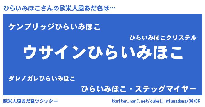 | 女子向けラノベタイトル風あだ名 | 『ひらいみほこの卵を拾いまして』 |