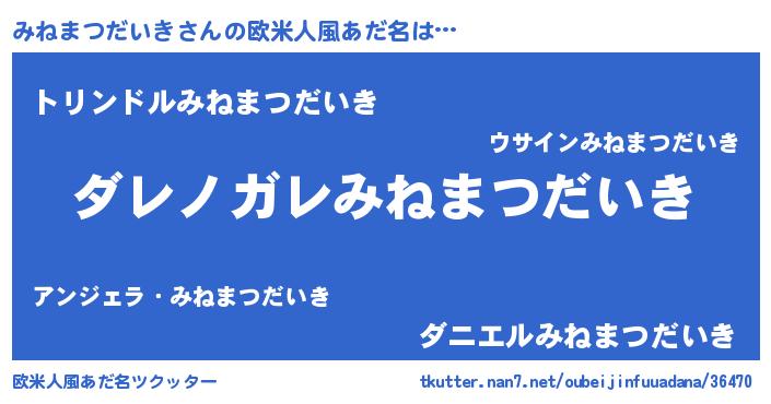 | 男性向けラノベタイトル風あだ名 | 『この素晴らしい世界にみねまつだいきを!』 |