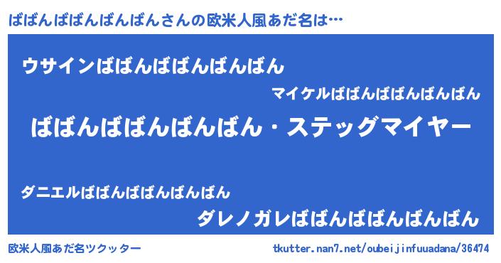 | 男性向けラノベタイトル風あだ名 | 『冴えないばばんばばんばんばんの育てかた』 |