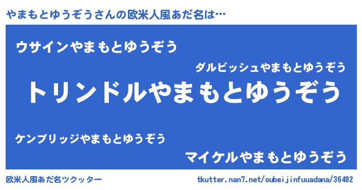 | 男性向けラノベタイトル風あだ名 | 『転生したらやまもとゆうぞうだった件』 |