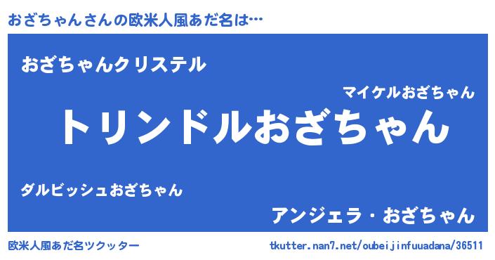 | 男性向けラノベタイトル風あだ名 | 『おざちゃん~年齢イコール彼女いない歴の魔法使い~』 |