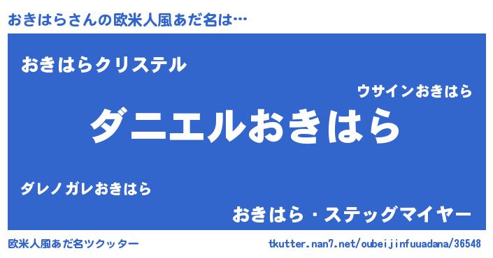 | ヒーロー風カッコイイあだ名 | 『正義の使者おきはら』『天弓騎士オキ』 |