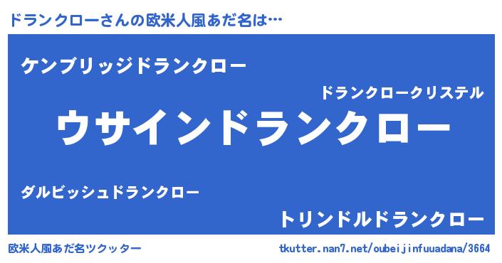 | 女子向けラノベタイトル風あだ名 | 『ドランクローは平凡を望む』 |