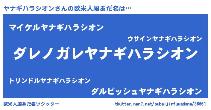 | 意味不明あだ名 | 『住所不定無職ヤナギハラシオン(10歳)』 |