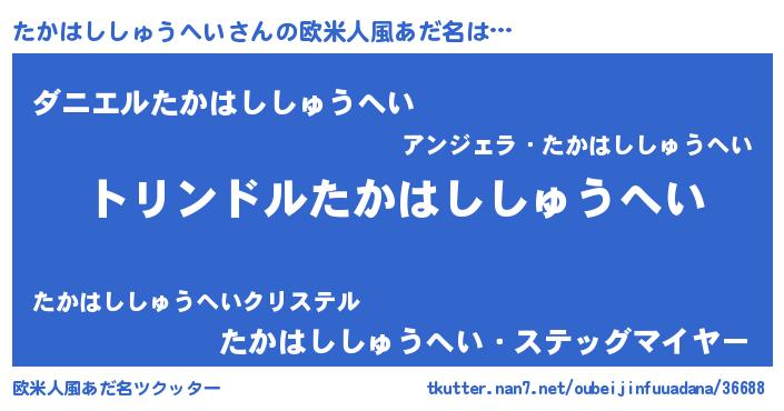| 男性向けラノベタイトル風あだ名 | 『たかはししゅうへい~年齢イコール彼女いない歴の魔法使い~』 |