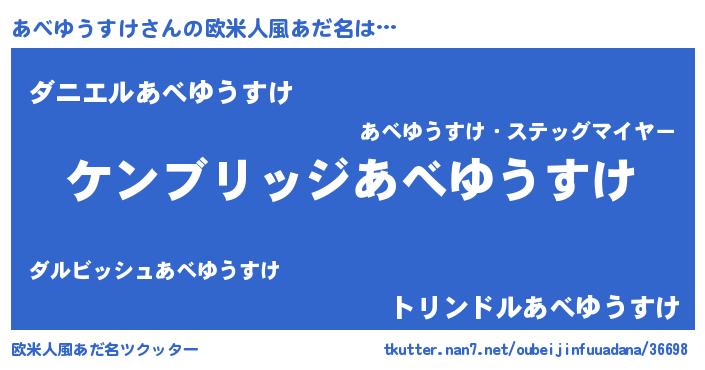 | 男性向けラノベタイトル風あだ名 | 『Re:あべゆうすけから始める異世界生活』 |