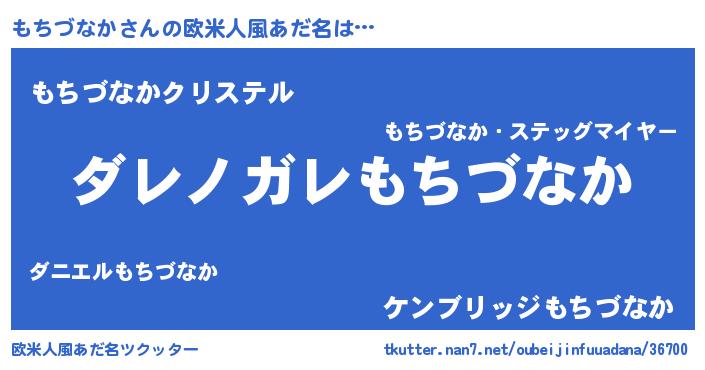 | 男性向けラノベタイトル風あだ名 | 『この素晴らしい世界にもちづなかを!』 |