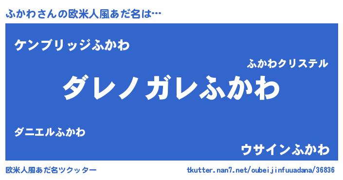 | ヒーロー風カッコイイあだ名 | 『仮面フカダー』『サイバー戦士フカワ』 |