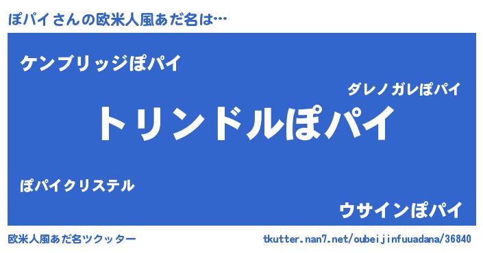 | 男性向けラノベタイトル風あだ名 | 『ぽパイ~年齢イコール彼女いない歴の魔法使い~』 |