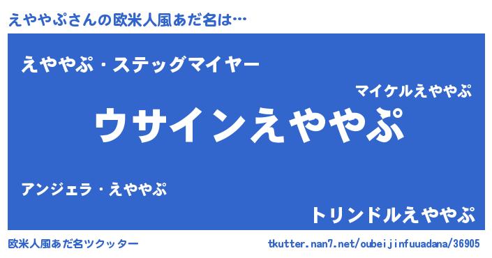| 女子向けラノベタイトル風あだ名 | 『えややぷの卵を拾いまして』 |