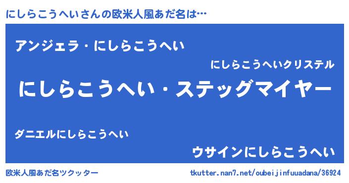 | 男性向けラノベタイトル風あだ名 | 『うちのにしらこうへいが世界を掌握している!』 |