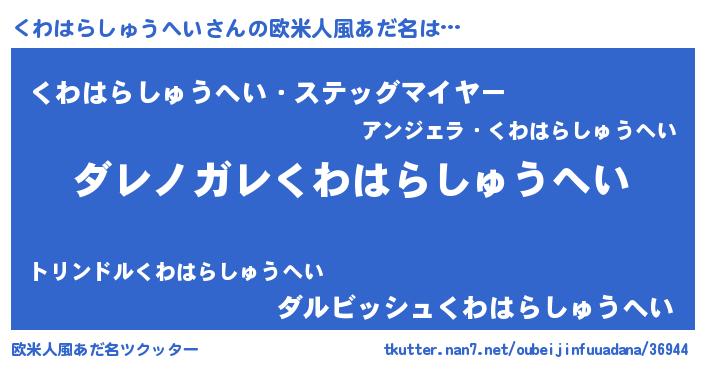 | ヘコむあだ名 | 『くわはらしゅうへい(苦笑)』『くわを』 |