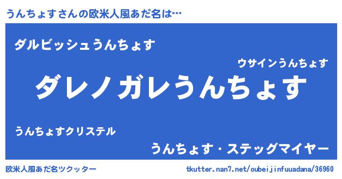 | 男性向けラノベタイトル風あだ名 | 『この素晴らしい世界にうんちょすを!』 |