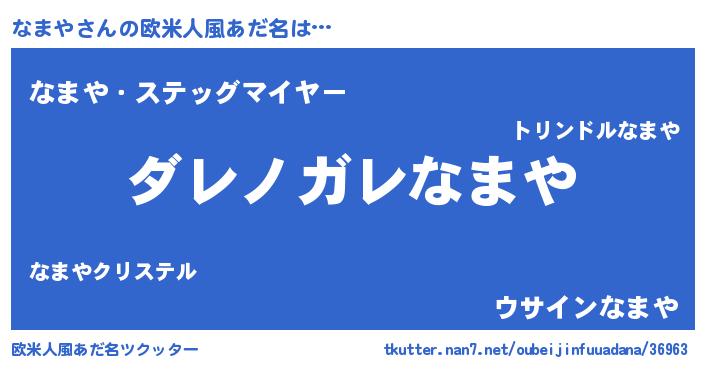 | ヒーロー風カッコイイあだ名 | 『仮面ナマダー』『天弓騎士ナマ』 |