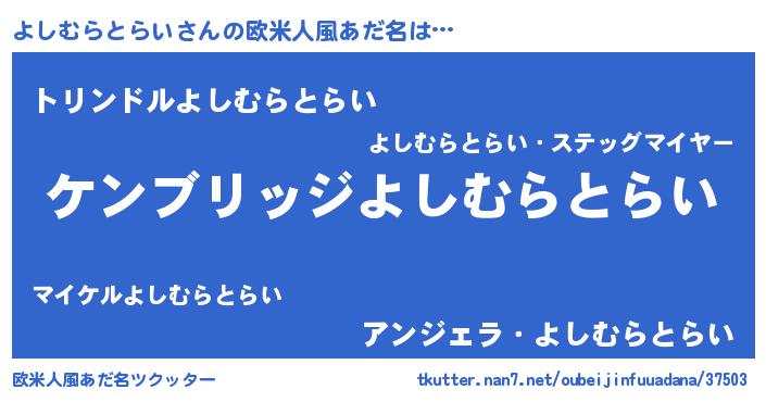 | 男性向けラノベタイトル風あだ名 | 『魔法科高校のよしむらとらい』 |