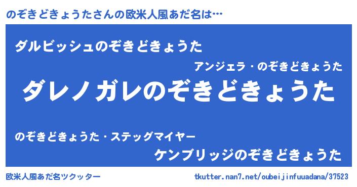 | 男性向けラノベタイトル風あだ名 | 『魔弾の王とのぞきどきょうた』 |