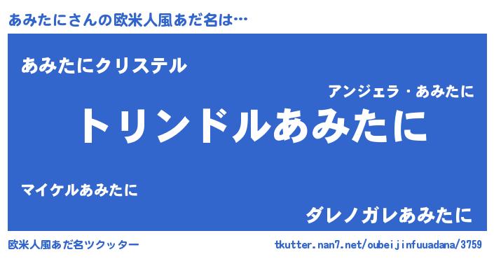 | 男性向けラノベタイトル風あだ名 | 『転生したらあみたにだった件』 |