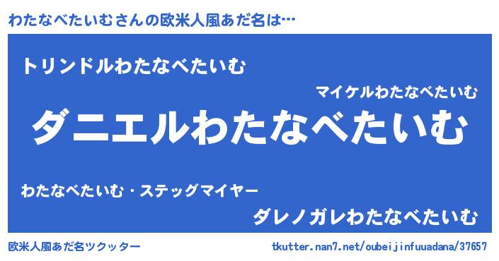 | 男性向けラノベタイトル風あだ名 | 『おまえをオタクにしてやるから、俺をわたなべたいむにしてくれ! 』 |