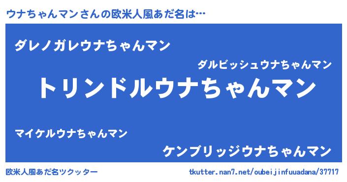 | 男性向けラノベタイトル風あだ名 | 『ウナちゃんマン~年齢イコール彼女いない歴の魔法使い~』 |