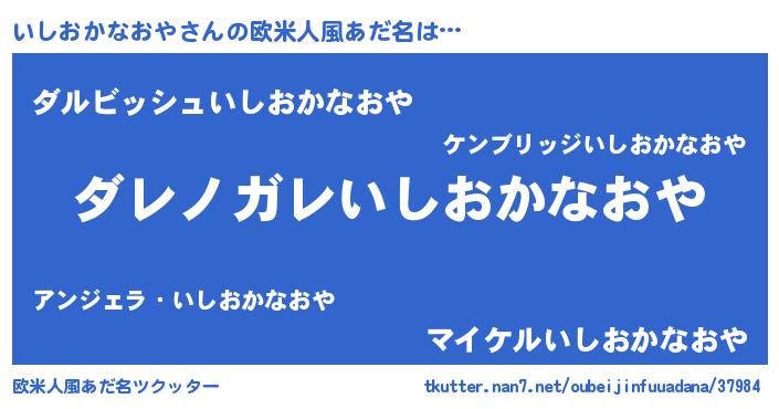 | 男性向けラノベタイトル風あだ名 | 『魔弾の王といしおかなおや』 |