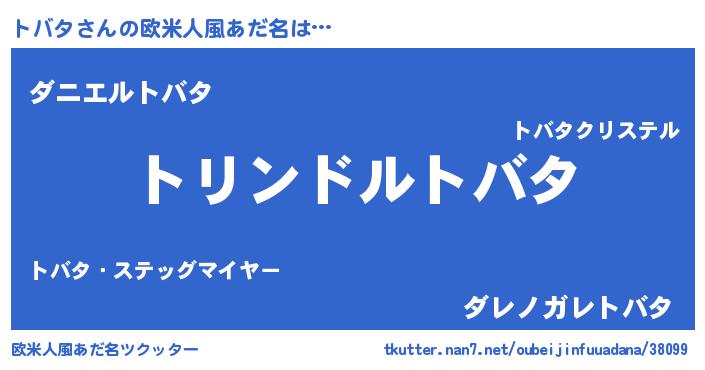 | 男性向けラノベタイトル風あだ名 | 『トバタ~年齢イコール彼女いない歴の魔法使い~』 |